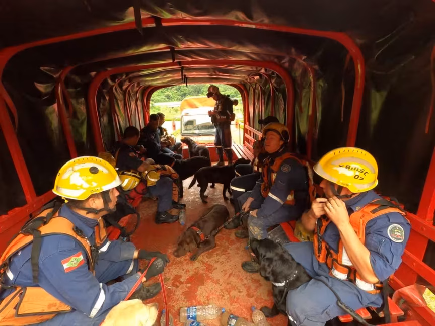 Por volta das 7h deste domingo, 20, a equipe com nove bombeiros militares e seis cães de busca e resgate do Corpo de Bombeiros Militares de Santa Catarina (CBMSC), chegou na região atingida e iniciou a atuação.
