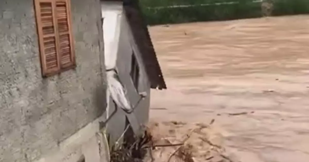 Neste sábado, 7, parte de uma casa foi arrastada pela correnteza de um rio em Orleans, no Sul de Santa Catarina. O nível do rio subiu na cidade devido às fortes chuvas que atingem o estado nesta semana.
