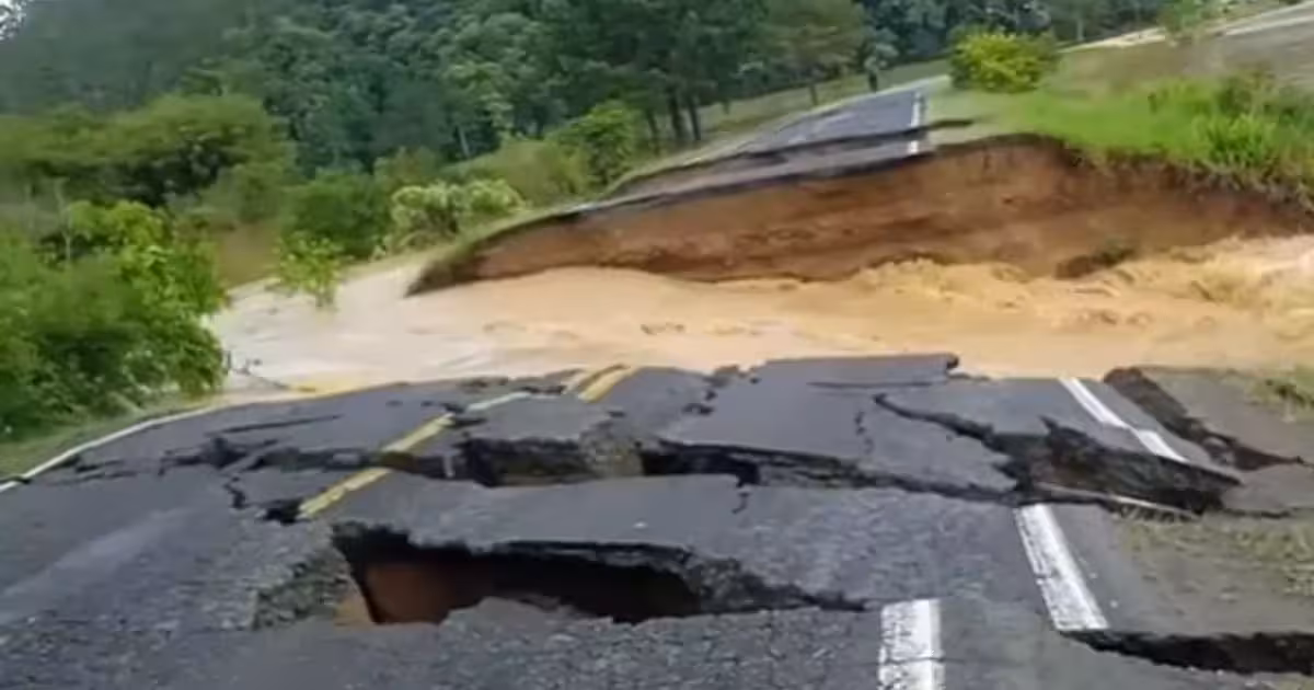Devido a forte força da água, o asfalto, no quilômetro (km) 159, da via cedeu completamente. A Polícia Militar Rodoviária (PMRv) foi até o local. Os policiais orientam para evitar qualquer deslocamento para a região onde o asfalto cedeu.