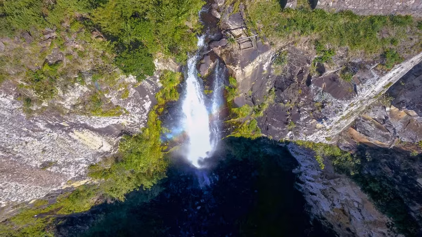 A Cascata Véu da Noiva mostrada em belas imagens aéreas