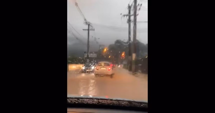 VÍDEO – Motoristas se arriscam em ruas alagadas em Brusque