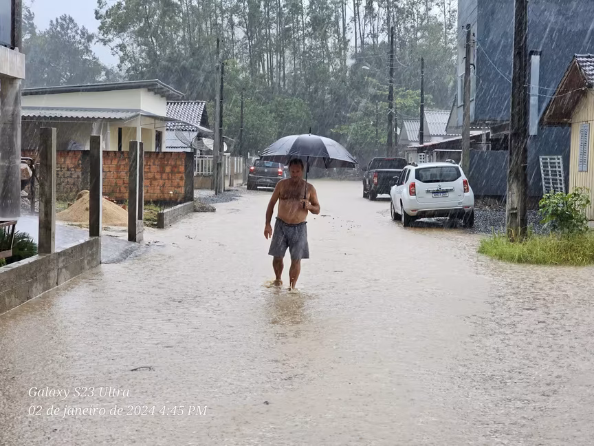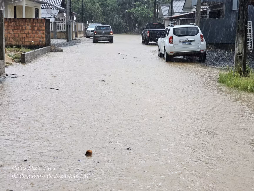 Guabiruba, em particular, testemunhou alguns locais do município sendo impactados por uma enxurrada considerável, com a água invadindo ruas e até mesmo residências.