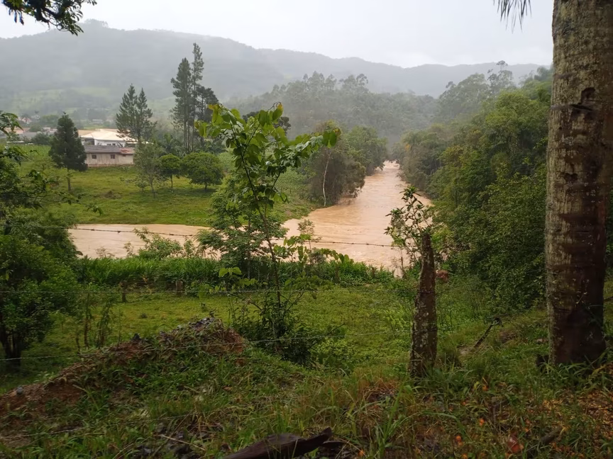 Um dos municípios mais atingidos é Vidal Ramos, onde o índice pluviométrico já ultrapassa os 120mm, segundo dados provenientes da rede Groh Estações.