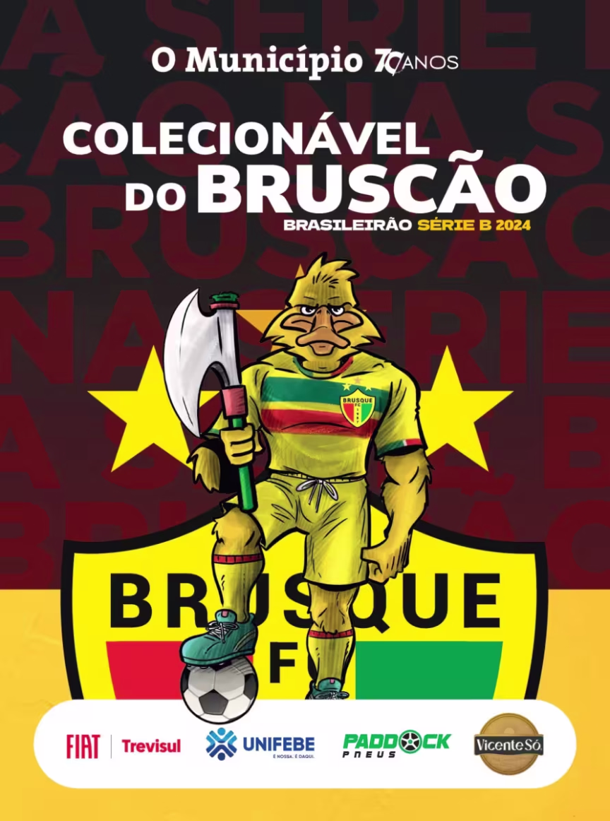 O jornal O Município finalizou, em 30 de outubro, a publicação das 42 figurinhas do Colecionável do Bruscão. Dentre elas, foram lançadas figurinhas de 41 jogadores do Brusque que disputaram o Campeonato Brasileiro Série B e uma especial do marreco, mascote do time. As figurinhas foram publicadas na edição impressa toda quarta-feira, desde 12 de junho até 30 de outubro. Visualize ou faça download do Colecionável do Bruscão completo!