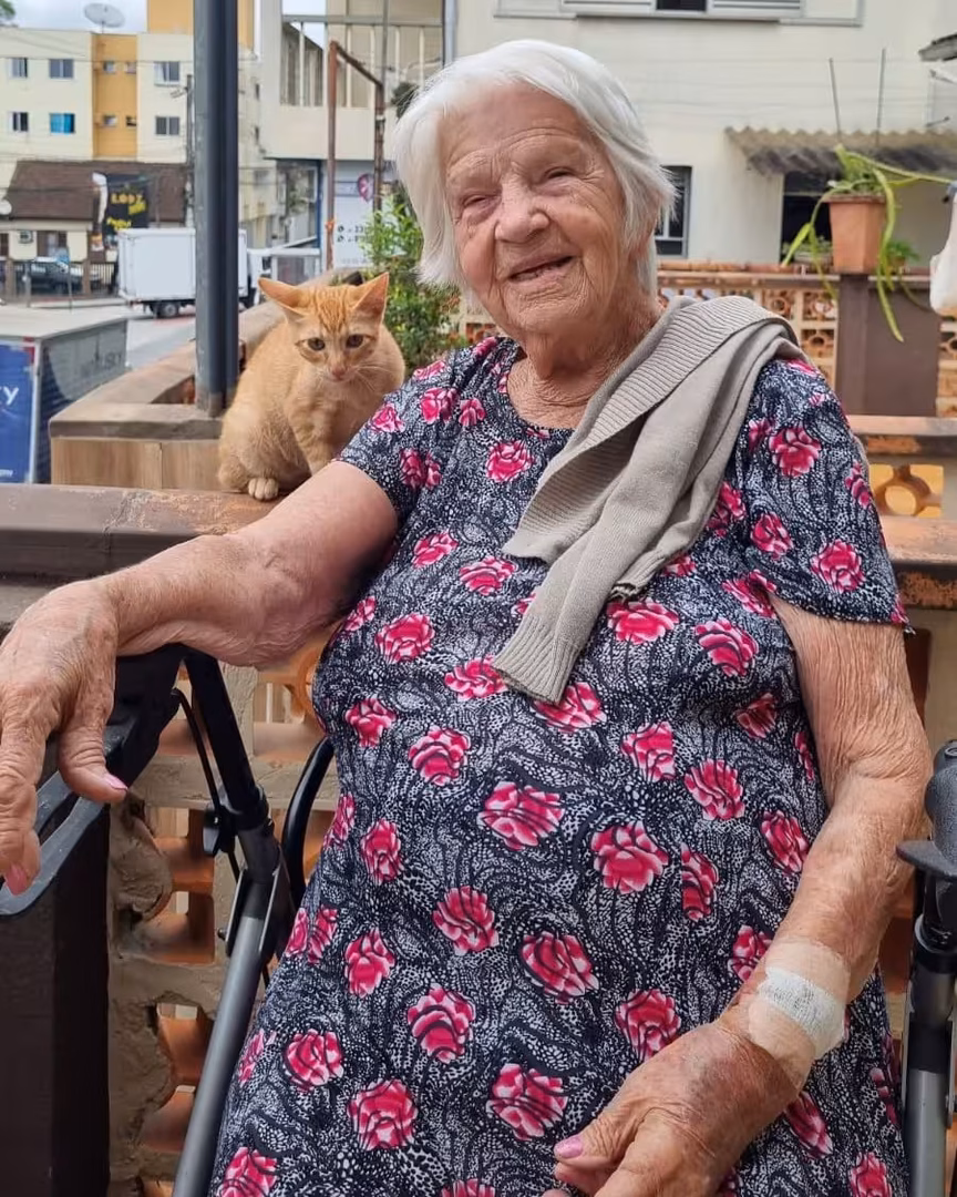 Apesar dos desafios inerentes à idade avançada, Alayde segue firme em sua rotina, preservando sua independência e mantendo-se ativa em suas atividades diárias.
