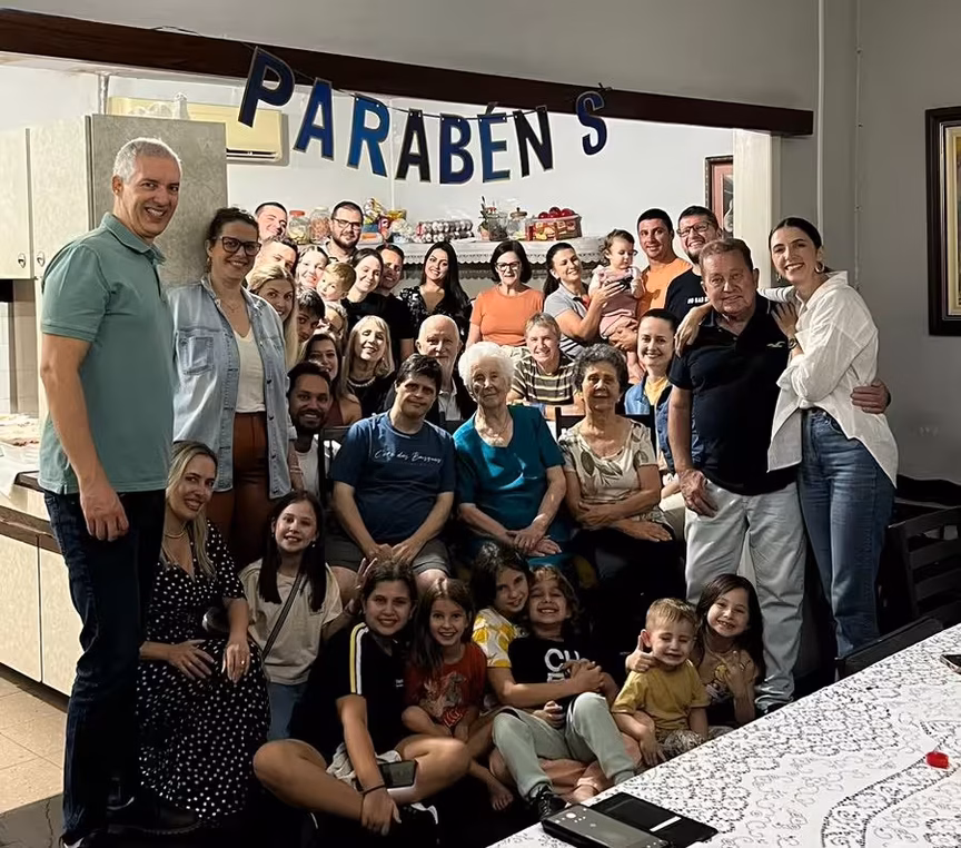 A brusquense Lysette Gevaerd dos Santos comemorou recentemente 96 anos e não pensava em ter filhos quando era jovem. O que o futuro reservara para ela, porém, foi bem diferente e ela acabou tendo uma grande família. Ela e o marido Wilson Santos tiveram dez filhos, mas, apesar de muito trabalho, ela acredita que teve uma vida bem vivida.