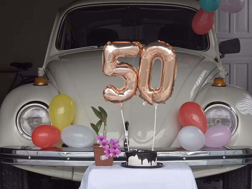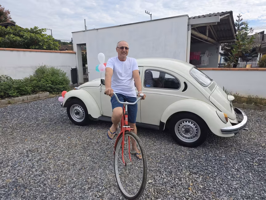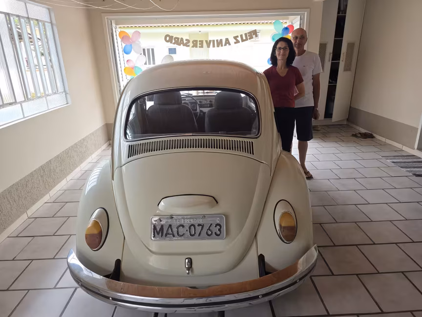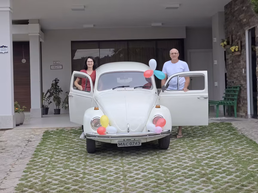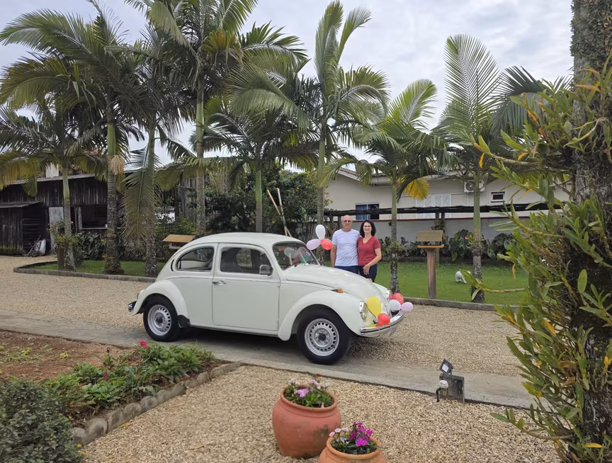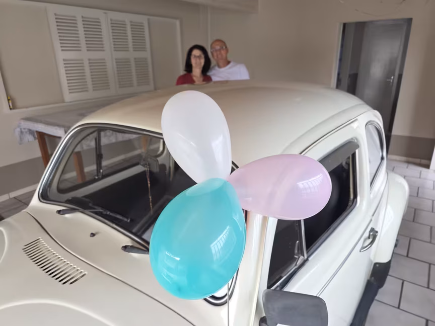 Casal de Brusque celebra 50 anos de fusca com bolo, café e muita emoção