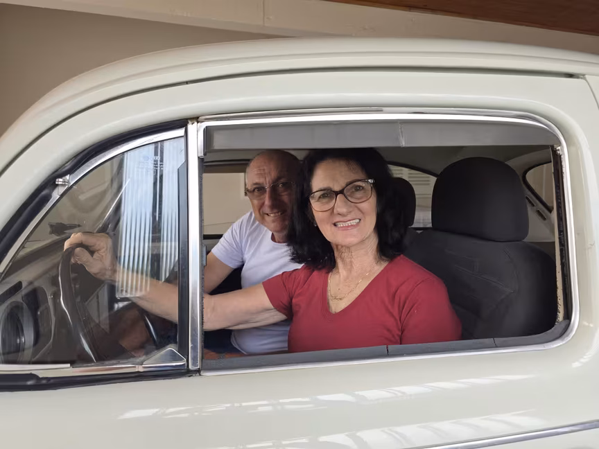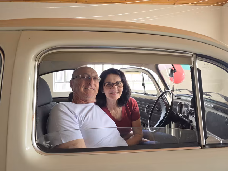 Assim, comprou a parte que ainda pertencia à irmã mais nova e, ao lado do marido Edson, continuou a cuidar do fusca com um zelo que impressiona.