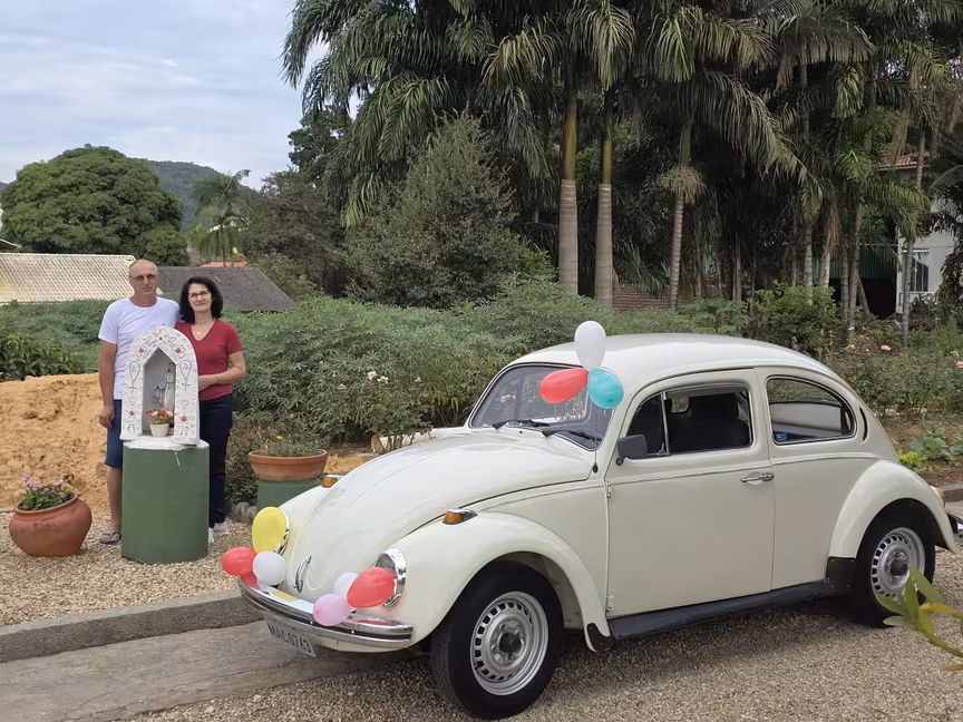 Neste sábado, 3, um charmoso fusca ano 1975 se torna o protagonista de um marco especial para o casal brusquense, Edson Maestri e Maria Cuchi Maestri, que se desenrola no bairro Rio Branco.