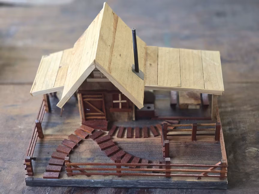 O trabalho, desenvolvido de forma artesanal, alia reaproveitamento de matéria-prima, cuidado ambiental e atenção aos detalhes construtivos.