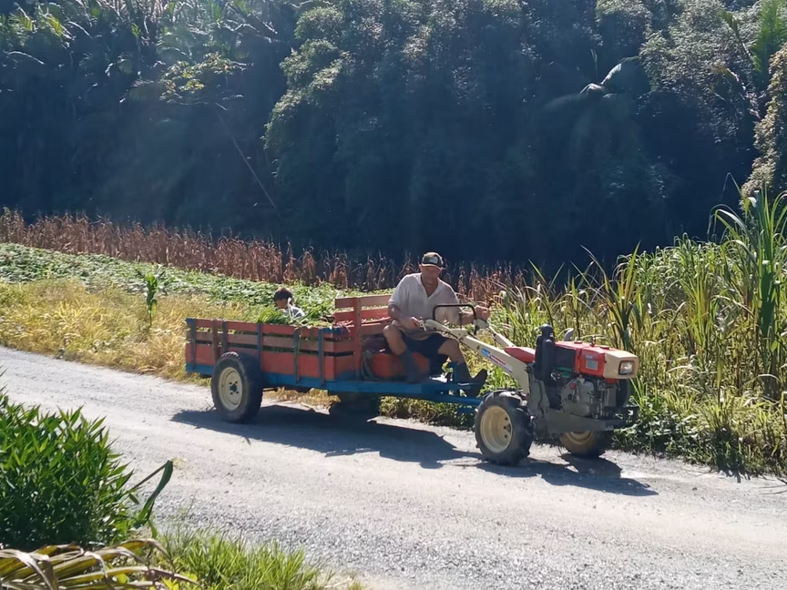 Com o avô ao volante, o aprendizado no campo começa desde cedo/Arquivo: Família Bianchessi