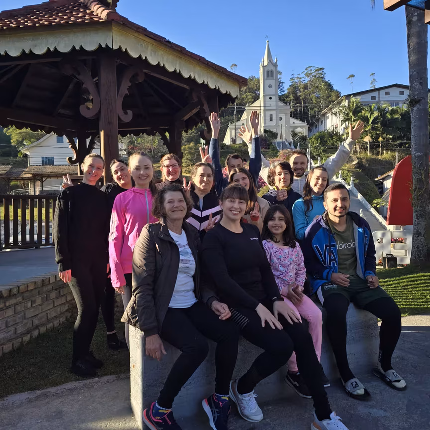 As aulas, que acontecem semanalmente aos sábados, pontualmente às 7h30, transformam a praça central em um espaço de encontro, onde o bem-estar e a socialização caminham lado a lado.