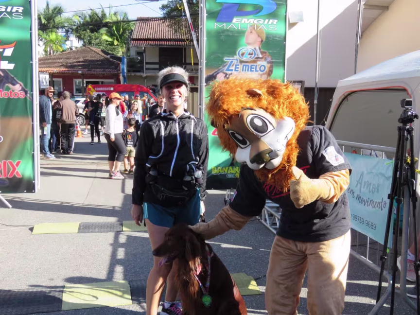 Tatiane Krüger Nieburh, 45, percorreu 10 km acompanhada de Sheldon, cachorro da raça Setter Irlandês. Os dois correm juntos há um ano e meio e treinam seis vezes por semana.