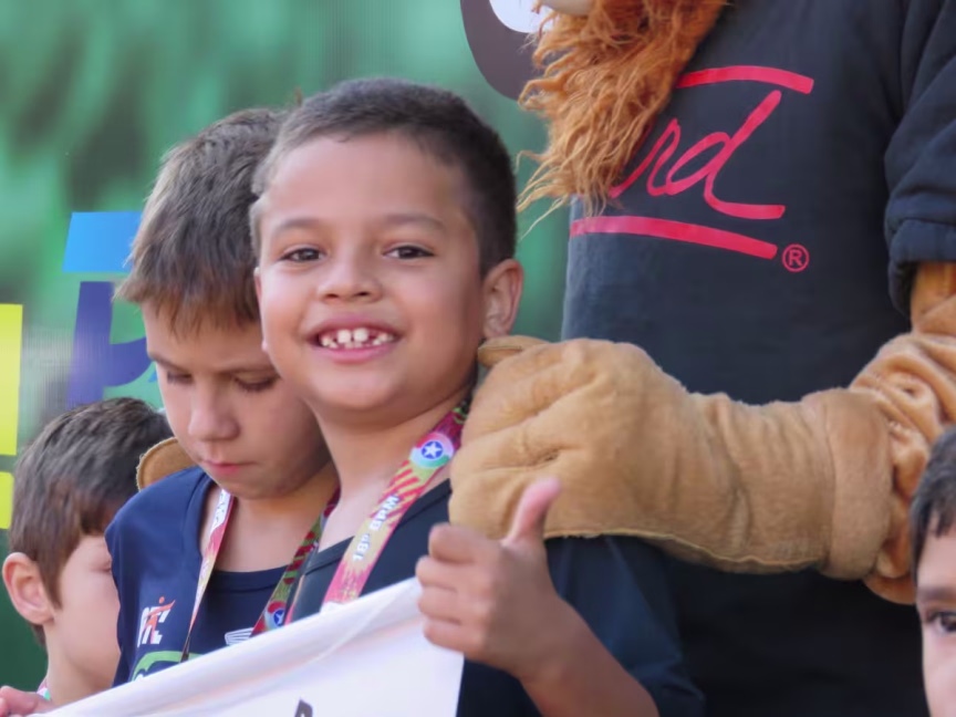 Por volta das 9h30 foi a vez das crianças. Eles largaram em frente ao batalhão e percorreram um trajeto de 500 metros.