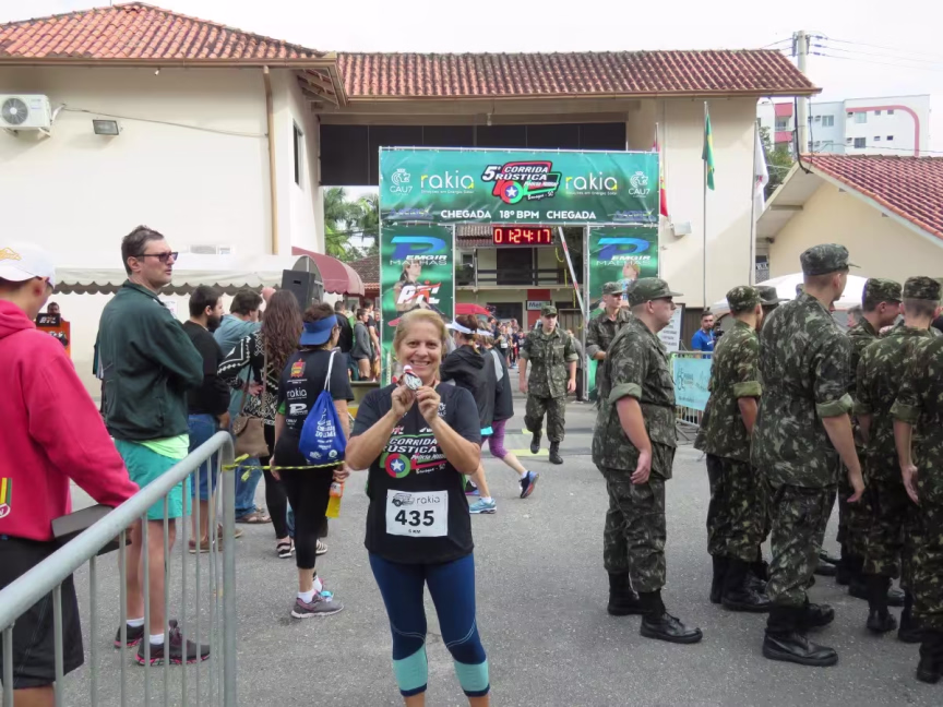 Maria Conceição, 62, conhecida como Conce, pratica caminhada e participou da corrida rústica pela primeira vez. Ela conta que ama esportes e que adorou correr os 5 km. "É muito gratificante, vale a pena".