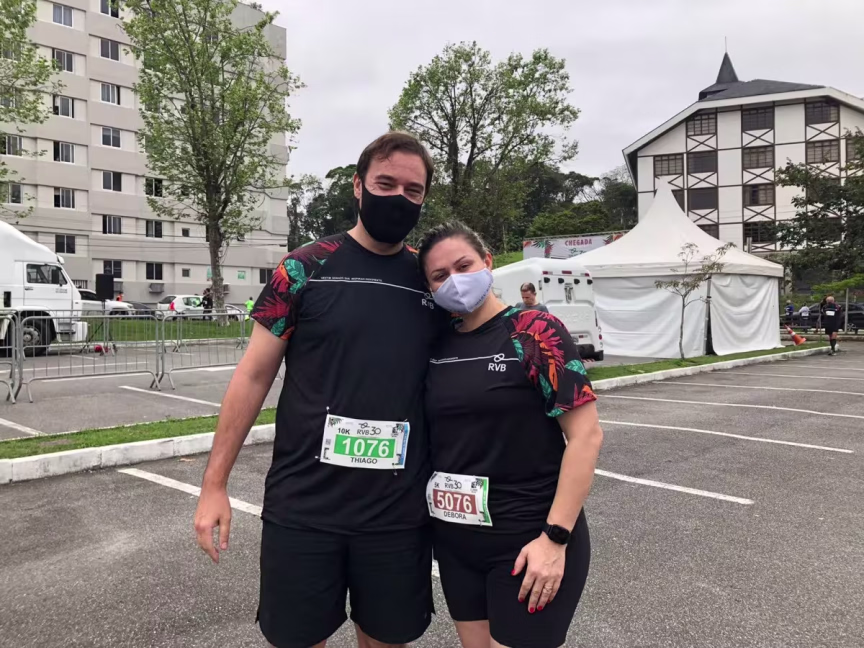 Quem também levantou cedo para participar de mais uma prova foi o casal Débora Santos, de 35 anos, e Thiago de Souza, 36. Moradores de Gaspar, os dois contam que começaram a correr em 2015. Devido à pandemia e como não havia mais provas, eles começaram a correr na rua para não perder o ritmo. “Fomos motivados pela saúde, para emagrecer e gastar calorias”, pontua Débora.