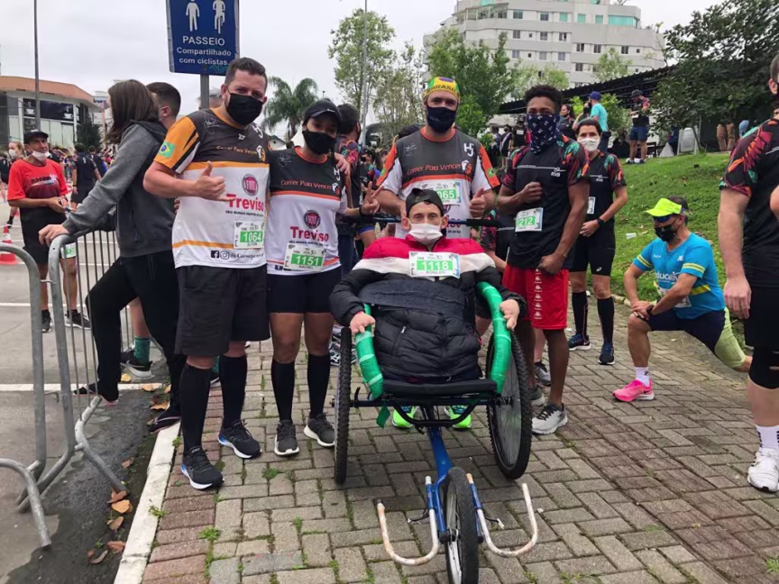 “É emocionante, eu vim por causa deles [os amigos]”, conta o cadeirante. Ele foi levado pelo empresário Jeison Pinheiro, 38, que também participou dos 10 km.