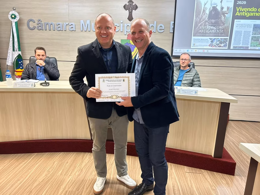 A Câmara de Vereadores de Botuverá homenageou nesta terça-feira, 2, o jornal O Município. A moção de congratulações foi proposta pelo vereador Alesc Sandro Venzon (PL), presidente interino do Legislativo.