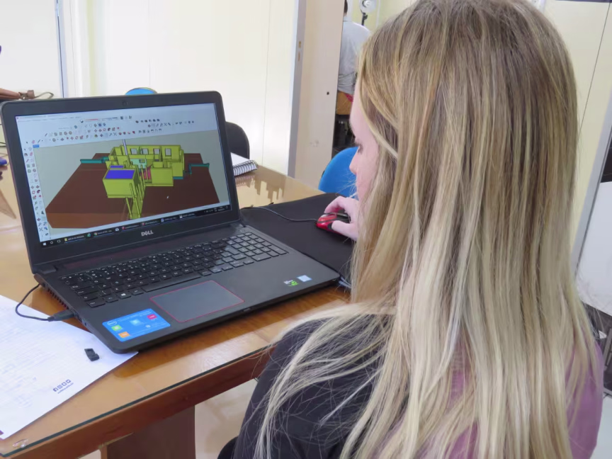 Elas já fizeram a planta baixa do casarão que servirá de base para o museu virtual e agora trabalham nos detalhes da casa, como as esquadrias. “As janelas têm detalhes bem minuciosos, então nós tentamos deixar o mais próximo possível da edificação original”, explica Ariele.