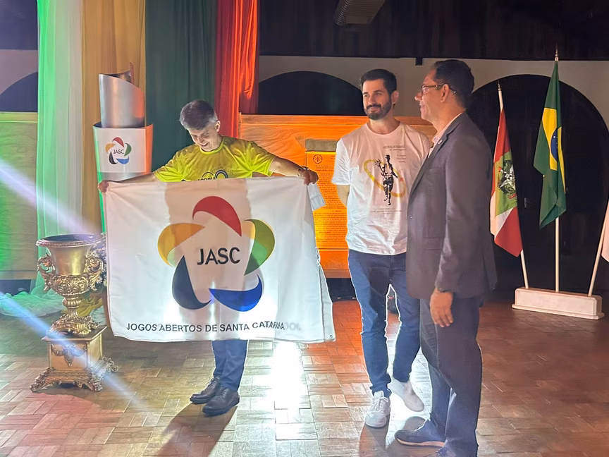 Na noite desta quarta-feira, 23, foi realizada na Sociedade Esportiva Bandeirante, em Brusque, a cerimônia de acendimento do Fogo Simbólico dos Jogos Abertos de Santa Catarina (Jasc). O evento marca a contagem regressiva para a 63ª edição dos Jogos, que acontecerá em Concórdia, em novembro, com 29 modalidades esportivas.