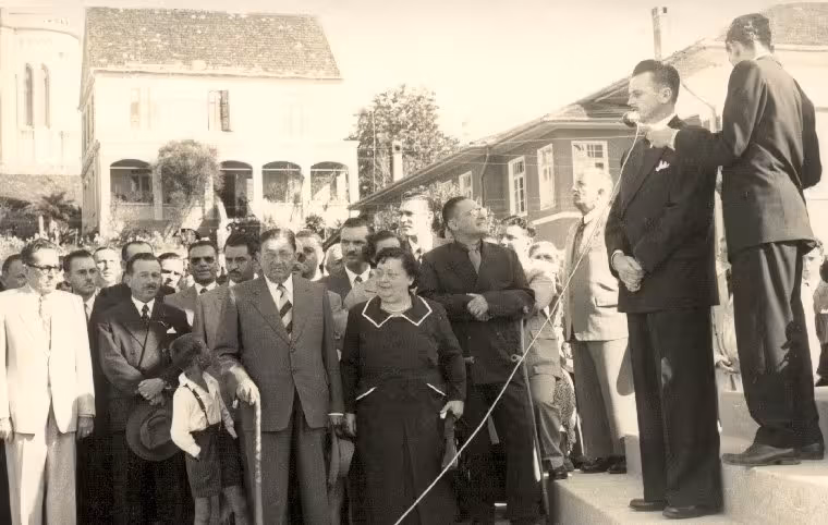 “Tenho uma foto, de finais dos anos 1960, que mostra ele, a esposa e a Christine. Quando ele veio para Brusque, passou a morar com a mãe, Selma (filha do cônsul) na Vila Gucki, o palacete que pertenceu a Carlos Renaux”, relata Rolf.