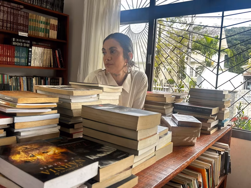 Porém, naquela época ainda afetada pela pandemia, elas decidiram que seria melhor alugar um espaço em Brusque para manter o sebo, já que, em Guabiruba, pagavam dois aluguéis: um para o sebo e outro para a casa.