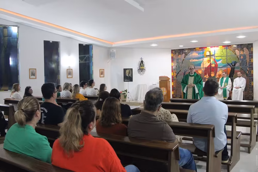 A celebração, realizada na Capela Divino Espírito Santo, contou com a presença das famílias dos intercambistas e foi marcada por momentos de emoção. O grupo recebeu uma bênção especial do padre Aléssio da Rosa, vice-diretor do Colégio São Luiz; e também o cordão com a Cruz Dehoniana, símbolo da instituição. A missa marcou ainda a entrega oficial das passagens aos intercambistas pelos seus familiares.
