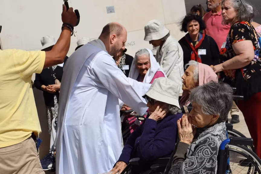 Por fim, o pároco menciona as visitas aos túmulos de São Francisco de Assis, Papa João Paulo II, do Beato Carlo Acutis, e a paz experimentada nos santuários marianos em Medjugorje, Lourdes e Fátima.