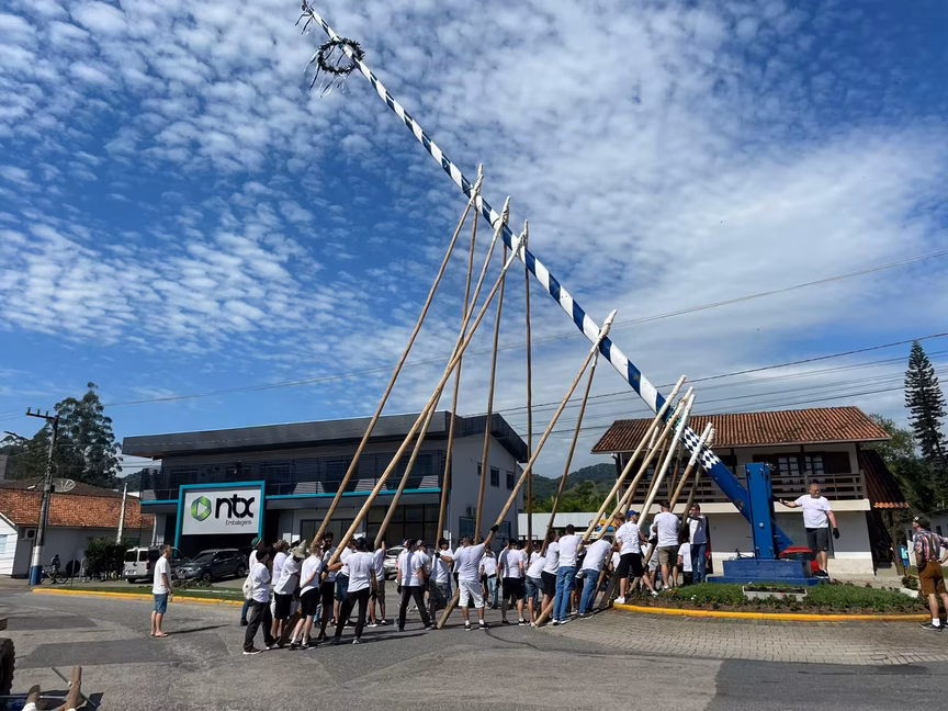Moradores de Guabiruba erguem a 4ª Maibaum; veja como foi