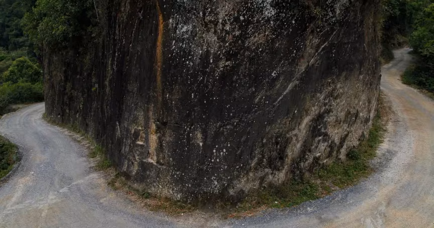 Paredão escavado à picareta guarda marcas de obra centenária no interior de Botuverá