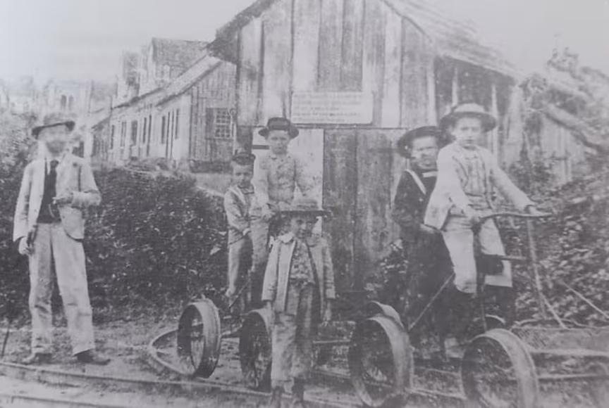 A primeira iniciativa para o uso de trilhos no transporte de cargas foi impulsionada pelo Cônsul Carlos Renaux, empresário visionário que contribuiu ativamente para o desenvolvimento da cidade.