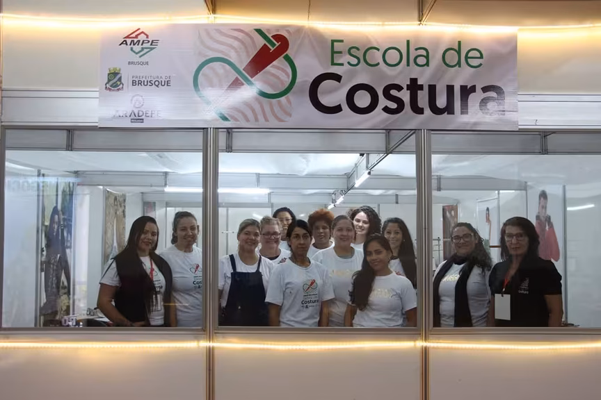 Outra novidade da edição foi a presença in loco da Escola de Costura, projeto de qualificação profissional da Ampebr, em parceria com a Prefeitura de Brusque. Desenvolvido desde 2019, o projeto oferece gratuitamente aulas de costura e já formou mais de 800 alunos.