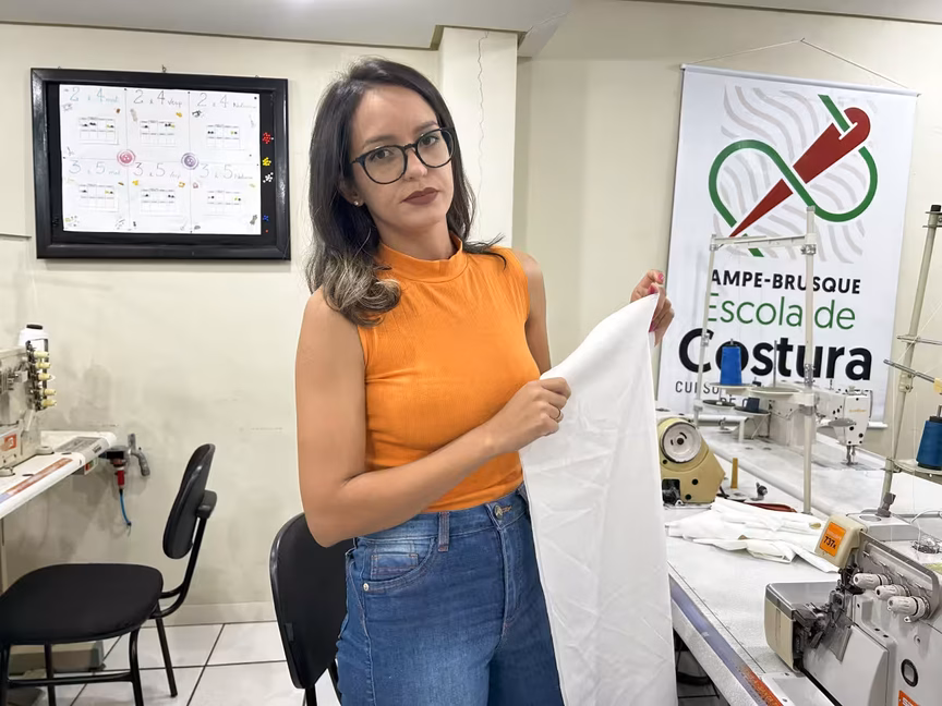 Letícia Monteiro comprou máquina para costurar em casa e pretende seguir na profissão
