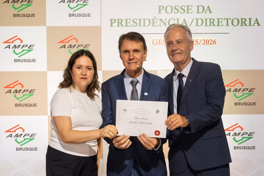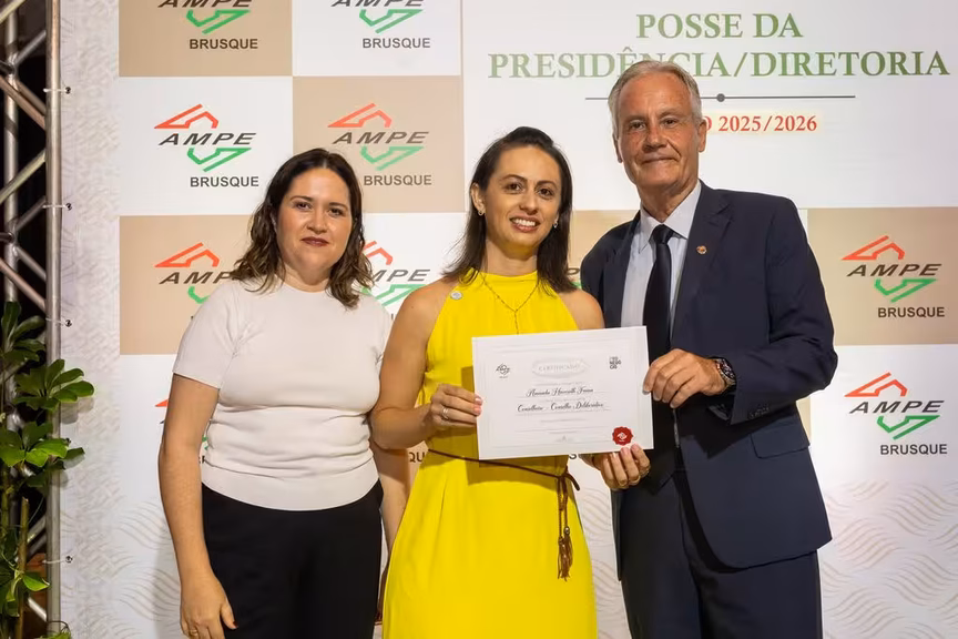 A nova diretoria executiva, conselho fiscal e conselho deliberativo da Associação de Micro e Pequenas Empresas de Brusque (AmpeBr) tomou posse na noite desta quarta-feira, 26, no Bandeirante. Os integrantes ocuparão os cargos durante o biênio 2025-26.