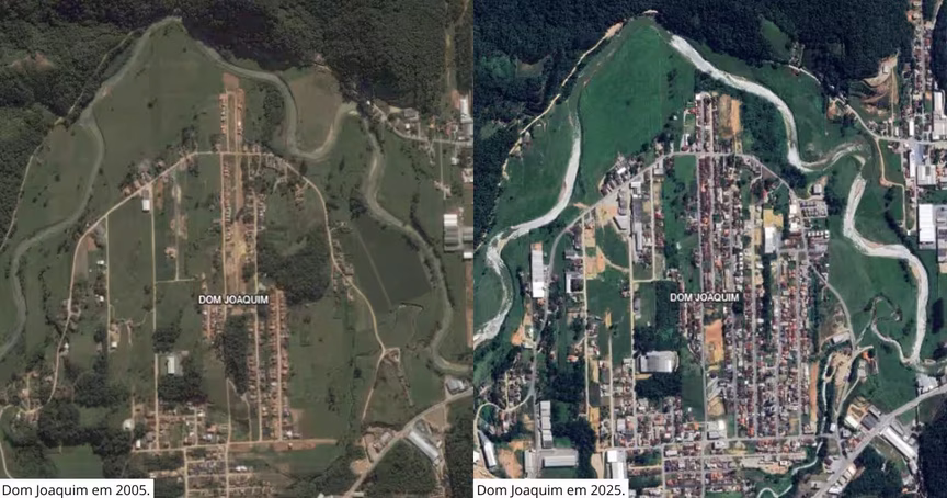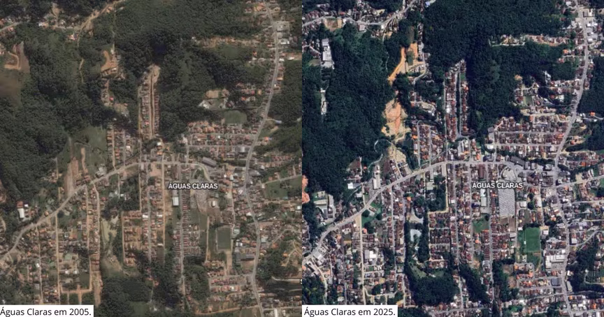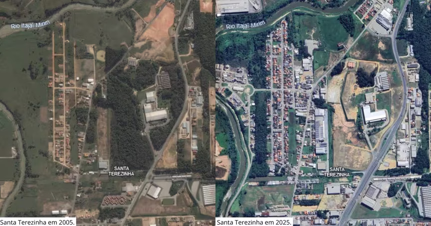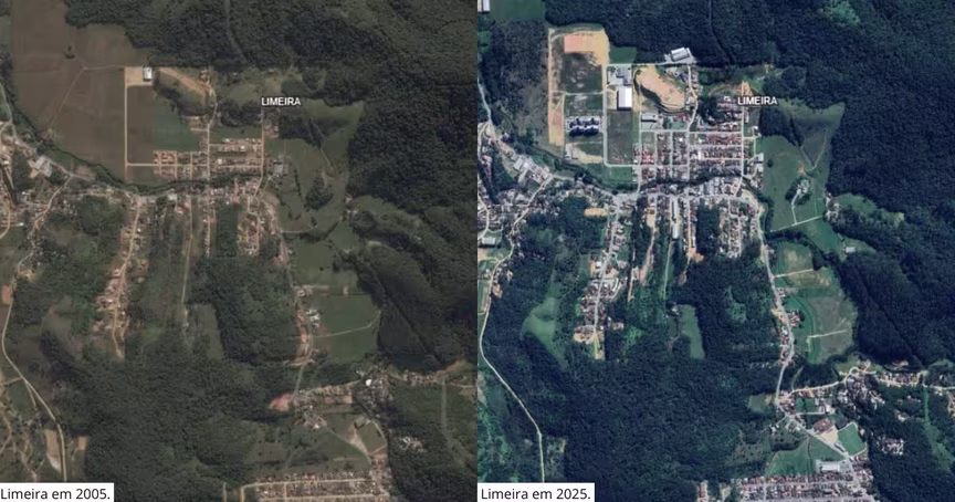 Imagens de satélites mostram expansão urbana de mais de 100% em Brusque ao longo de 20 anos; confira