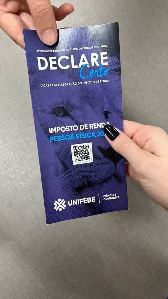 O Declare Certo é um Projeto de Extensão do curso de Ciências Contábeis da Unifebe, desenvolvido todos os anos, entre os meses de março e maio. Sob a orientação dos professores, os acadêmicos do curso auxiliam a comunidade, atendendo gratuitamente às dúvidas sobre a Declaração do Imposto de Renda Pessoa Física (DIRPF), desde a documentação necessária até como declarar os rendimentos, bens e despesas.
