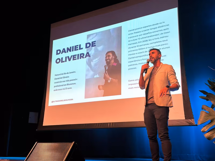 O esportista é ultramaratonista, campeão mundial, recordista pan-americano e é conhecido por ser um dos únicos a fazer todas as distâncias do triathlon. O evento aconteceu no Teatro do Centro Empresarial de Brusque (Cescb), e começou às 19h.