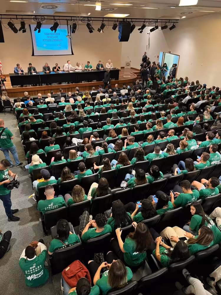 Os mais de 80 acadêmicos do Centro Universitário de Brusque (Unifebe) se uniram com mais de 1,5 mil estudantes para representar as instituições de ensino no lançamento do Fórum Parlamentar em Defesa das Universidades Comunitárias de Santa Catarina na Assembleia Legislativa de Santa Catarina (Alesc) na quarta-feira, 29.