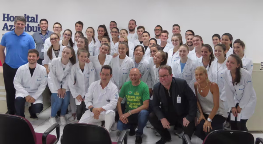 Os alunos da primeira turma do curso de medicina do Centro Universitário de Brusque (Unifebe) fizeram nesta sexta-feira, 22, uma visita ao Hospital Azambuja, onde foram apresentados às estruturas e ao complexo em geral, incluindo o Santuário de Azambuja. Dirigentes estiveram presentes na recepção, além do proprietário da Havan, Luciano Hang, que é vice-provedor do hospital. Os brusquenses são minoria da turma, que possui estudantes vindos de outras cidades de Santa Catarina, do Paraná e do Rio Grande do Sul.