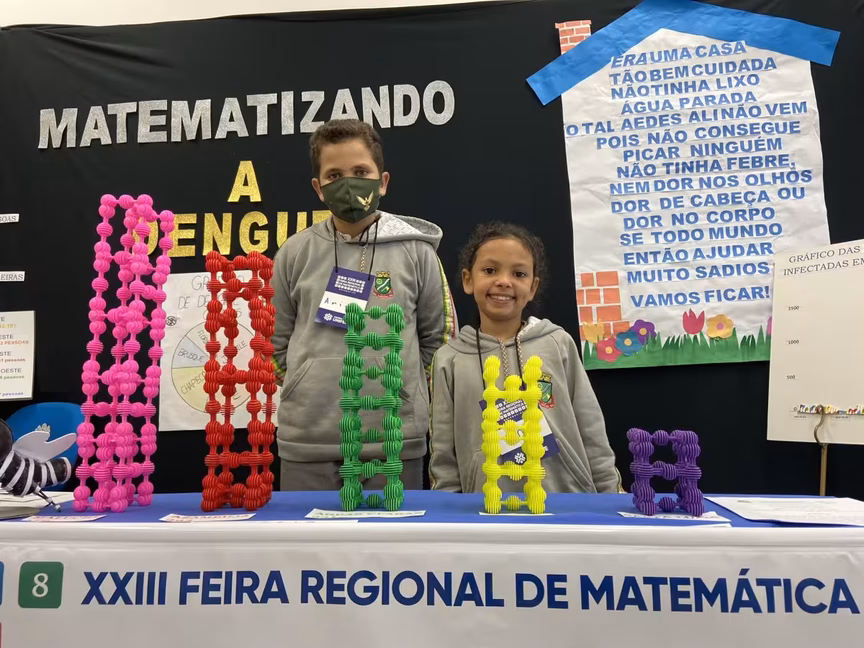 Entre os trabalhos apresentados na feira está o dos alunos Arian Martins Cardoso e Eloá de Paula Assini, de 11 anos. Eles estudam no 5º ano da Escola de Ensino Fundamental Professor José Vieira Corte, no bairro Santa Luzia, e desenvolveram um trabalho sobre a dengue.