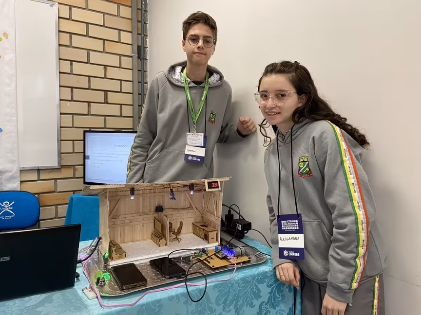 Já os alunos do 9º ano da Escola Ângelo Dognini, no bairro Planalto, Kauan Pickler, 15 anos, e Alessandra Bonsenhor do Carmo, 14 anos, utilizaram a matemática para calcular o consumo de energia de lâmpadas e equipamentos domésticos, e desenvolveram também um aplicativo de celular que ajuda a prevenir incêndios em residências, de forma remota.