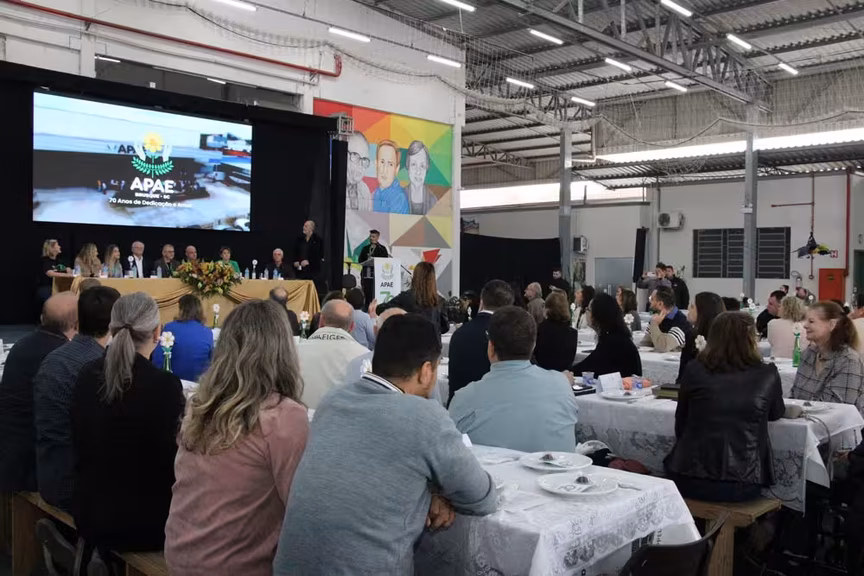 Cerca de 500 pessoas prestigiaram o almoço festivo que celebrou os 70 anos de fundação da Associação de Pais e Amigos dos Excepcionais (Apae) de Brusque. O evento ocorreu na sede da entidade, na manhã deste sábado, 12, e reuniu autoridades, diretores, colaboradores, voluntários, usuários e seus familiares.