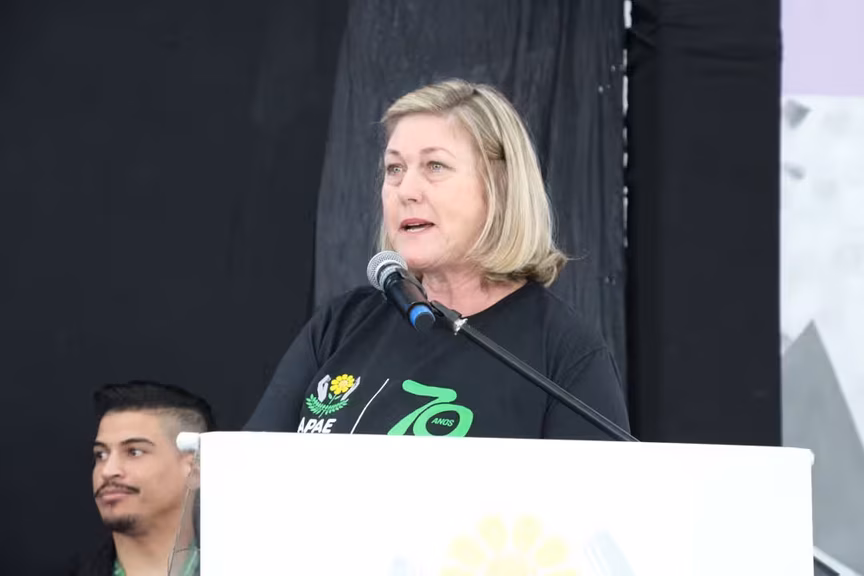 Representando o governador Jorginho Mello, a diretora de Ensino, Pesquisa e Extensão da Fundação Catarinense de Educação Especial (FCEE), Fernanda Martello Hermes, compartilhou a alegria de acompanhar este momento histórico. “O governo do Estado tem muito orgulho da Apae de Brusque e do seu desenvolvimento ao longo dos últimos 70 anos. É uma satisfação estar na cidade e participar deste ato especial”.