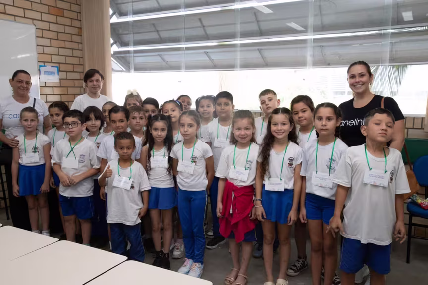 A Escola de Educação Básica Maria das Dores Cipriani, do bairro Carmelo, em São João Batista, participou do Natal Solidário Unifebe com mais de 40 alunos entre 8 e 9 anos.
