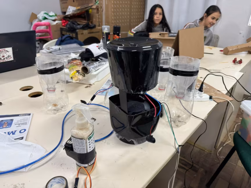 No contraturno escolar, em 2024, os alunos do 7º ano desenvolveram armadilhas inteligentes contra o mosquito Aedes aegypti, unindo saberes do clube de robótica, da pesquisa científica e de diferentes disciplinas escolares. As armadilhas foram construídas com materiais simples e recicláveis, integrando circuitos elétricos, LEDs e um mecanismo que reproduz odores atrativos para o inseto. Mas o projeto foi além da tecnologia.