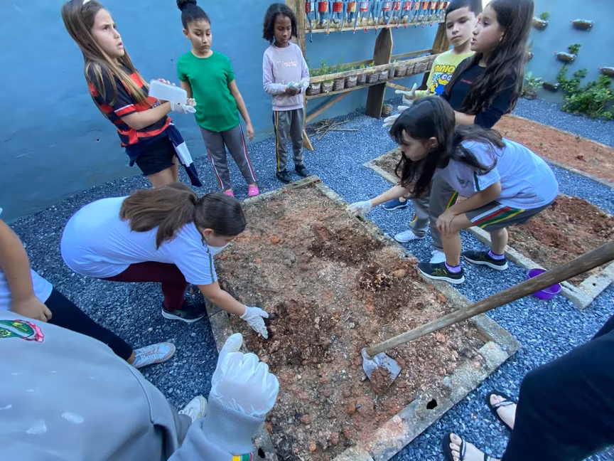 A partir dessas experiências, os alunos realizaram o plantio de aipim, ervas medicinais e hortaliças na horta da escola, aplicando técnicas de cultivo regenerativo prática agrícola que busca restaurar e aprimorar a saúde do solo e dos ecossistemas.