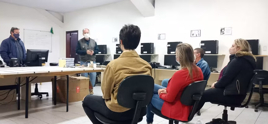 As aulas ocorrem no Centro Municipal de Inclusão Digital (CMID) e devem durar três meses. Quatro profissionais de cada escola, de diferentes disciplinas, participam da capacitação.