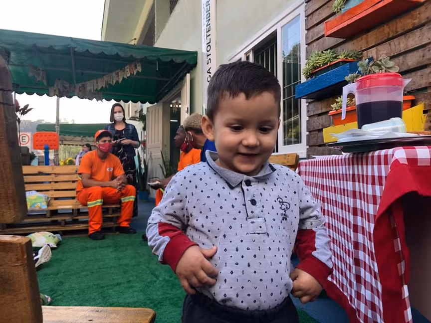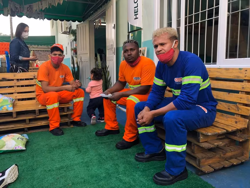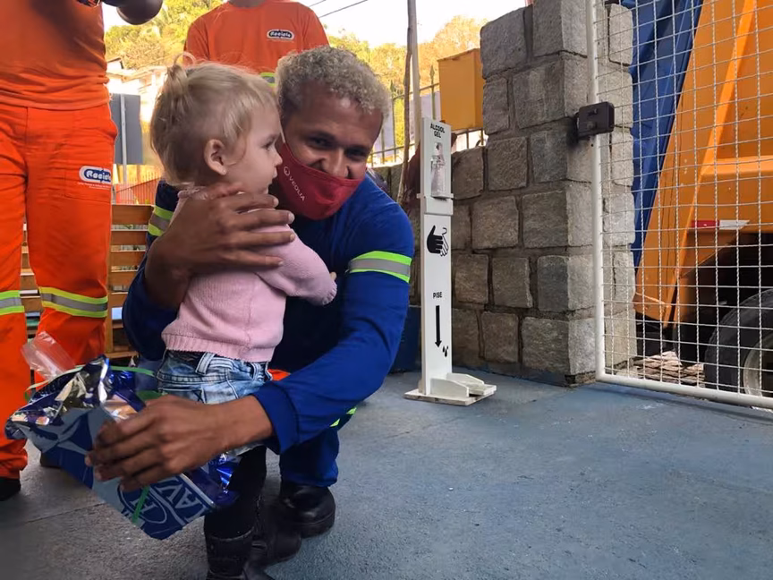 “É um reconhecimento dos coletores com as crianças. Tem muita gente que discrimina nosso serviço, mas temos pessoas que nos reconhecem. É bom para nós sermos reconhecidos”, diz o colaborador Atevaldo Henrique Valescosto Costa, 18, que está na Recicle há um mês.
