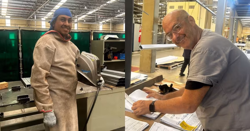 O venezuelano Angel Frank Munoz Naranjo, de 43 anos, e o italiano Marco Miacci, 64, são exemplos de pessoas que vieram para Brusque em busca de novas oportunidades de trabalho. Atualmente atuam no setor de construção civil da Irmãos Fischer.