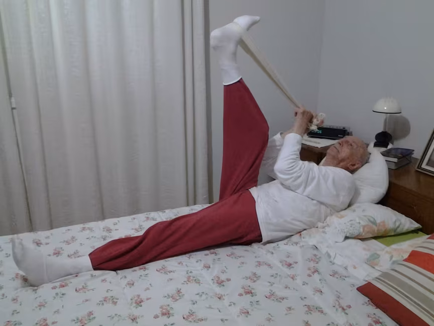 “Por causa do exercício, nunca mais sofri com isso. Faço o alongamento todos os dias, das 6h às 7h, na cama mesmo, deitado”, diz.